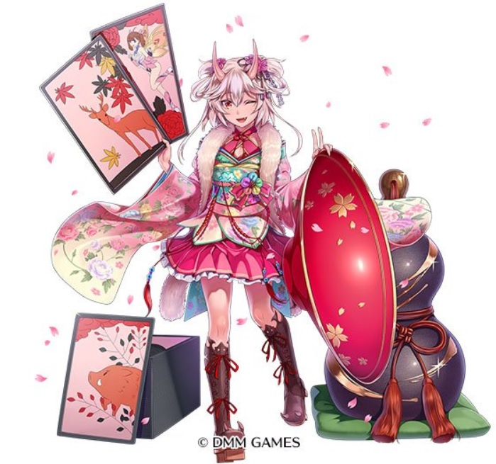 一人目はレアリティブラックの鬼『年賀の着衣始 鬼刃姫』が登場!#千年戦争アイギス pic.twitter.com/grXFU8JfER